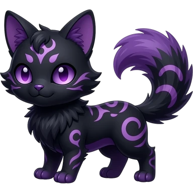 Kawaii dark purplish blackish edgy fantasy ethereal feline-vernid-sergal-fursona animal creature with a tufted tail full body with intricate markings emoji