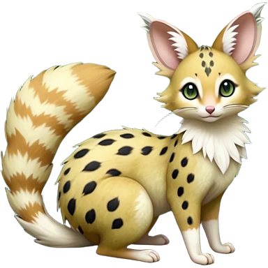 Hyper realistic beautiful elegant pretty precious cute Fakémon-Pokémon-opossum-feline-serval-caracal-chinchilla-Furret-Minccino-hybrid-creature with a big fluffy bushy tail (full body) emoji