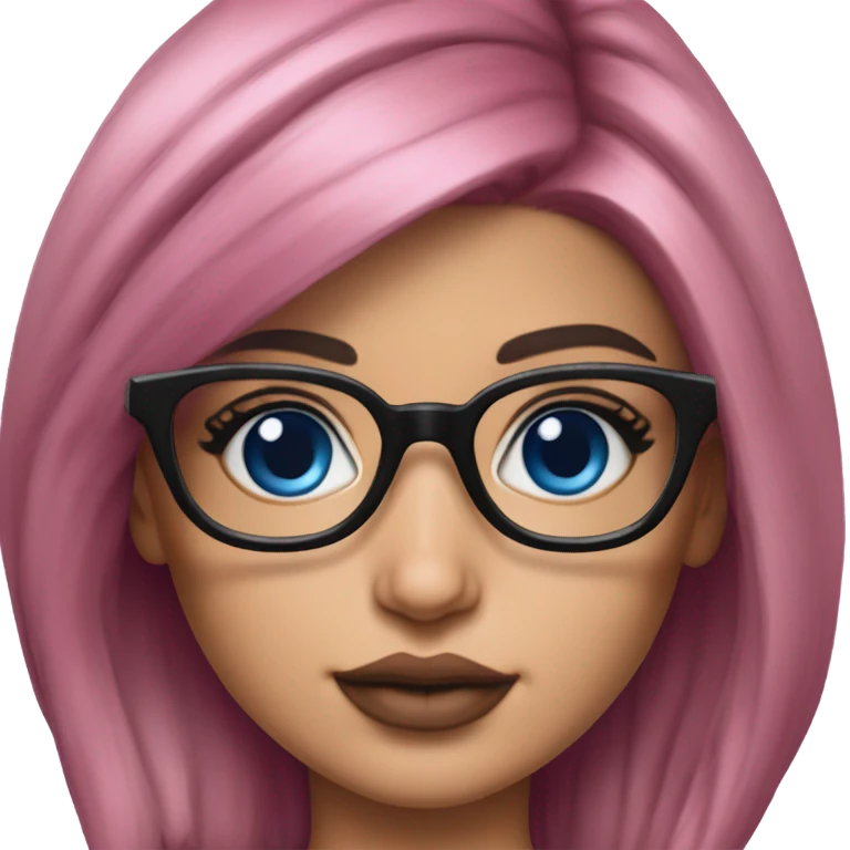 Photo Realistic kylie jenner stylish pink hair BLUE eyes and glasses elegant emoji