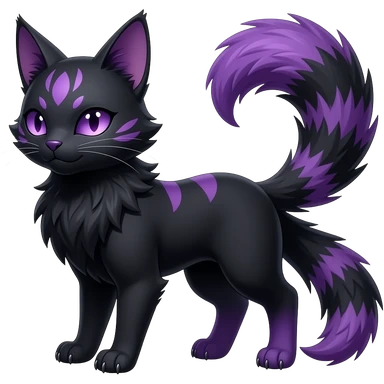 hyper-realistic cool edgy dark black purplish blackish edgy fantasy ethereal feline-vernid-sergal-monster-furret-Lycanroc-umbreon-fursona animal creature full body with intricate markings emoji