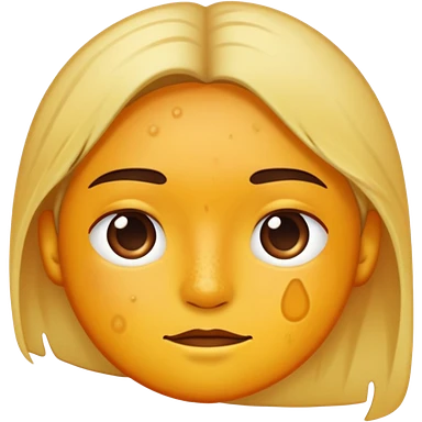 Hyperpigmention meme. Black hair with white ends. Red cheeks. Yellow face. Long nose. Pink lips. One eye. Face looking to the left. emoji