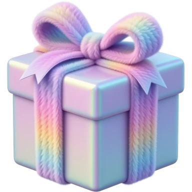 Hyperrealism, highly detailed wrapped gift, with realistic detailed opalescent ombre brightly colored girly style fluffy ribbon, high definition, must have no emoji icons, no emoji symbols emoji