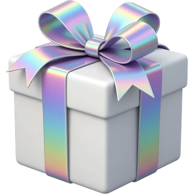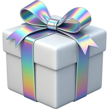 Hyperrealism wrapped gift, with realistic detailed opalescent holographic ribbon emoji
