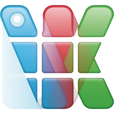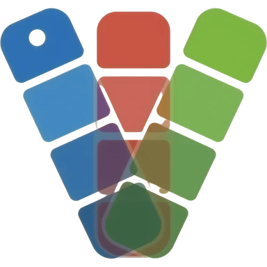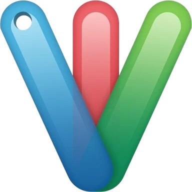 Minimal flat vector logo, 3 Pantone-style swatches forming a “V”. Rounded corners, subtle gradients, no outlines or shadows. Left swatch with small pivot hole. Colors: blue, red, green. Clean, modern, tech style. No text. emoji