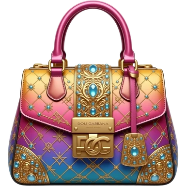 Hyperrealistic luxurious dolce and Gabbana bag, in an bold bright ombre color, with a metallic embellishment, highly detailed, isolated, 3d rendering, high definition emoji