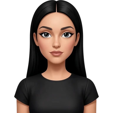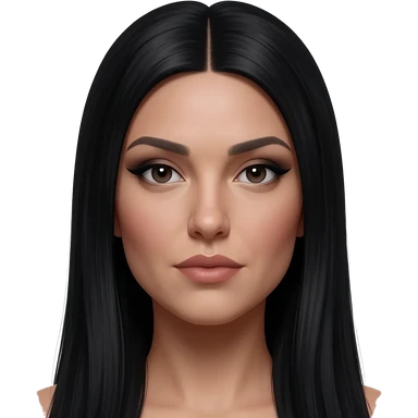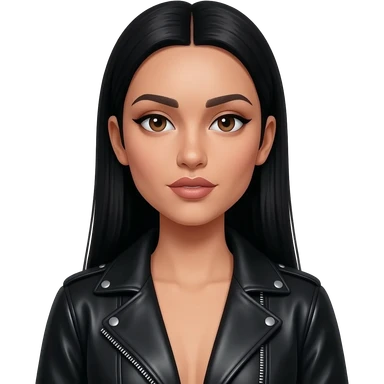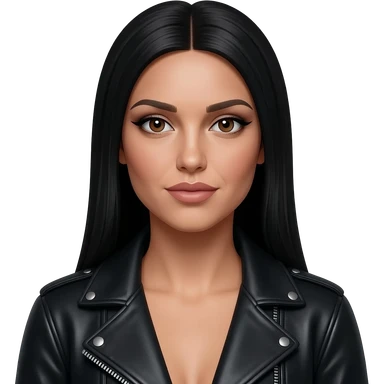 hyperrealistic foto of an italian very white woman with black long straight hair, cheekbones, long nose, slanted eyes, thin lips, eyeliner and black leather jacket that looks like laura pausini emoji | AI Emoji Generator