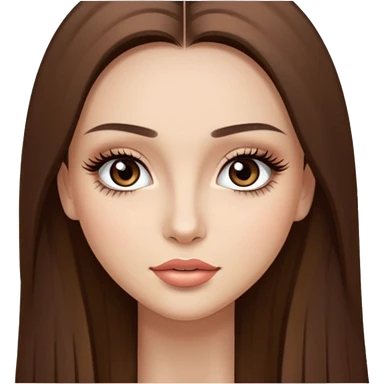 very beautiful girl with long straight brown hair and make-up with very light skin with long eyelashes emoji