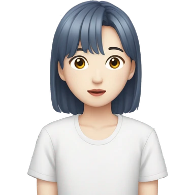 hyunjin con ojos cerrados, pelo negro, suéter blanco emoji