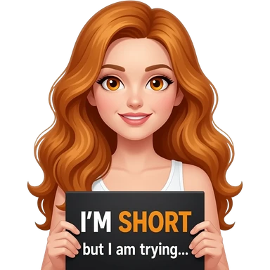 sexy girl with overlong ginger hair and ginger eyes a top with I'M SHORT but I am trying... written on it emoji