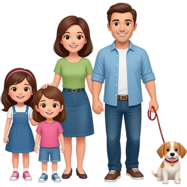 Familia mama papa niño de 13 años 2 niñas de 9 años 1 perro emoji