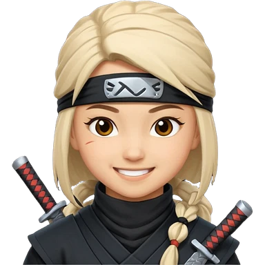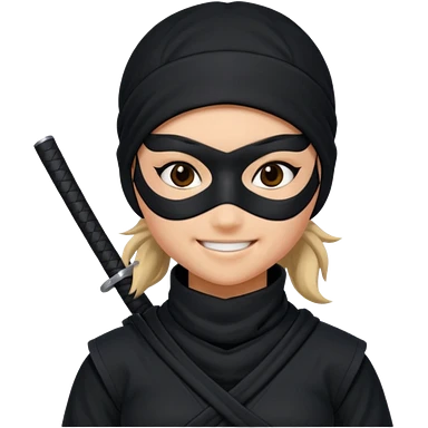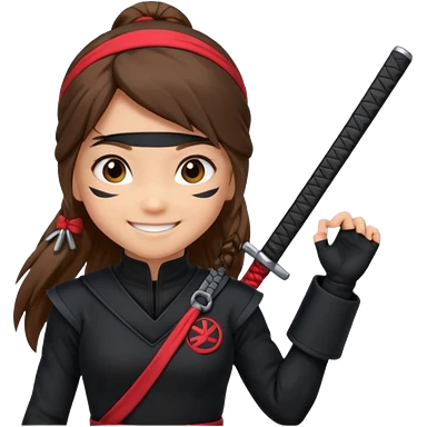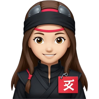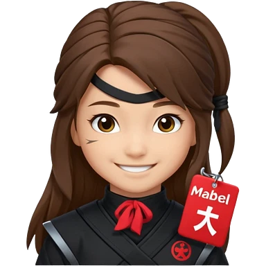 i need girl ninja smile with long brown hair with black costume with name mabel emoji