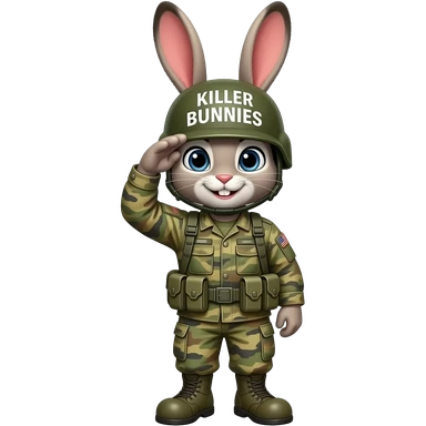 bunny in army fatigues saluting text Killer Bunnies on helmet emoji