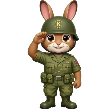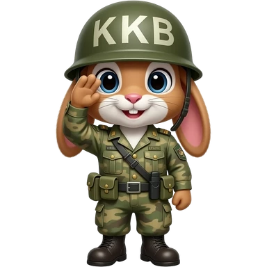 bunny in army fatigues saluting text K B on helmet emoji
