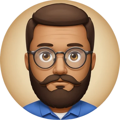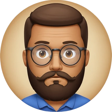 I need a simple emoji of a full bearded man with round glasses, light expression emoji | AI Emoji Generator