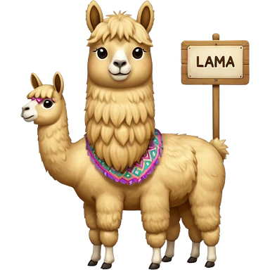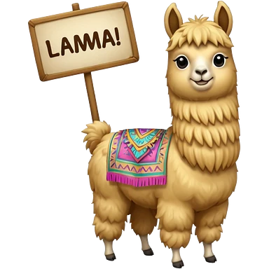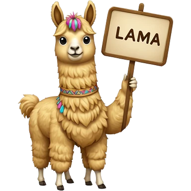 I need a golden llama holding a sign that says llama emoji