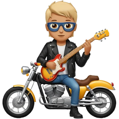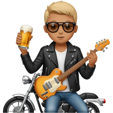 i need an emoji of a boy that is sitting on a crossmoter with a beer and an electric guitar in his hands emoji | AI Emoji Generator