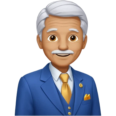 i need an image of a old man named clyde who provides basic credit reports. wears a blue blazer with gold button and open necked white shirt emoji
