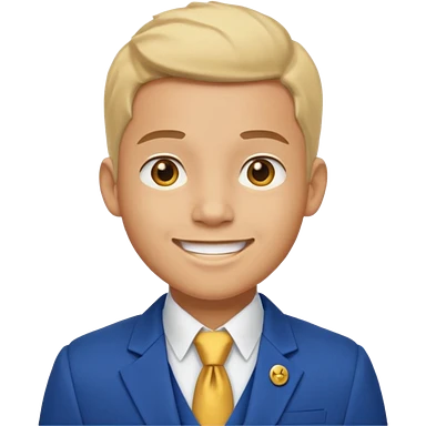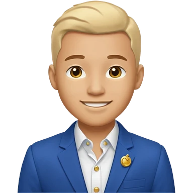 i need an image of a man named clyde who provides basic credit reports. wears a blue blazer with gold button and open necked white shirt emoji