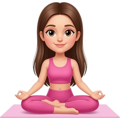 i need a girl with brown long hair thats straight doing some yoga poze but dressed in pink clothes but with smaller eyes emoji