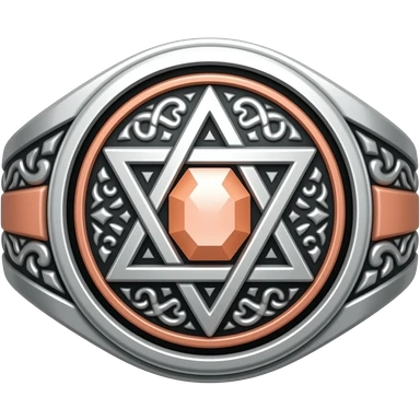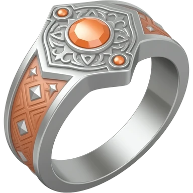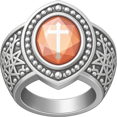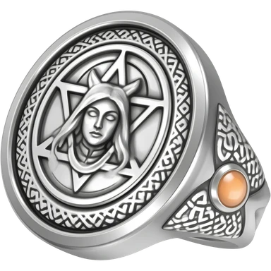 I need a ring representing an umbra pontifex, a dark priestess. It is a mysterious occult symbol, fit for a warlock. Embossed with details and maybe a gem. The color scheme is silver, a pastel orange and salmon color emoji