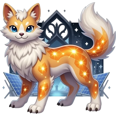 Epic complex fantasy glorious detailed futuristic divine godly angelic feathery sunny, white, albino, pastel, golden, orange glowing sparkly, realistic Fakémon-Trico-Sergal-Serval-Solgaleo-Vernid-creature (full body) solarpunk, shiny sparkly with a gold laurel emoji