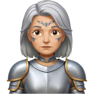 elderly tattooed knight, tattooed shoulder, long hair, female emoji