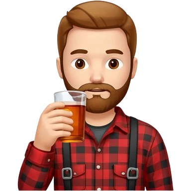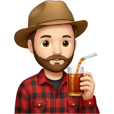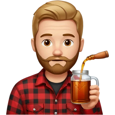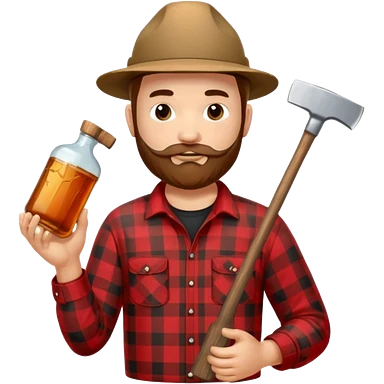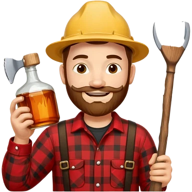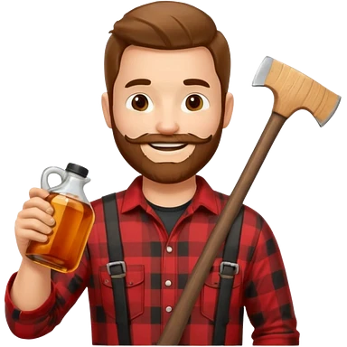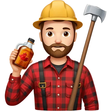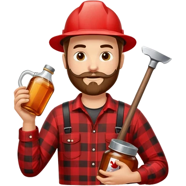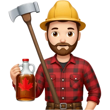 I want a Canadian lumberjack wearing a red and black plaid shirt drinking maple syrup out of the maple syrup bottle and holding a axe in the other emoji | AI Emoji Generator