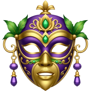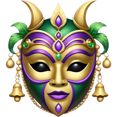 I want an emoji for Mardi Gras in New Orleans. I want a mask that is gold, green and purple with little bells at the bottom of the mask emoji | AI Emoji Generator