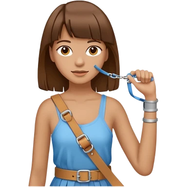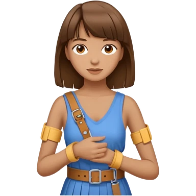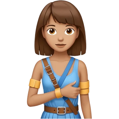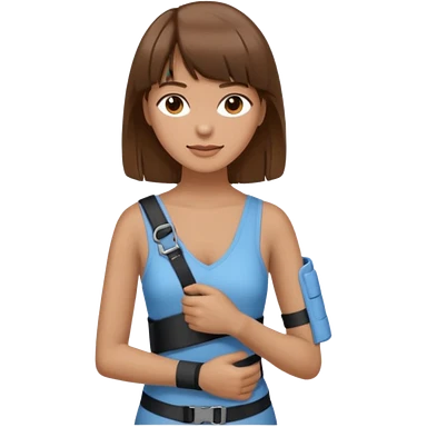 create an emoji of a woman with brown hair and a fringe with her right arm in a brace/sling emoji