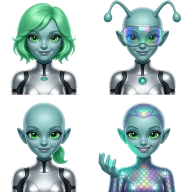 i want a set of emojis for my super fan club in tiktok my theme is alien ladies theme emoji