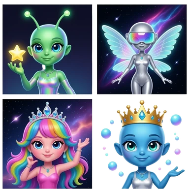 i want an emojis for my super fan club in tiktok my theme is beautiful dressed alien with ladies hair theme in pink color angry face liike princess emoji