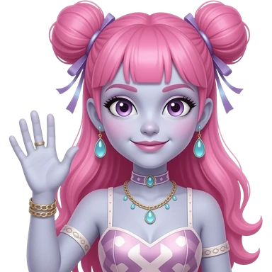 i want an emojis for my super fan club in tiktok my theme is beautiful dressed alien with ladies hair theme in pink color smiling saying bye with princess dress emoji
