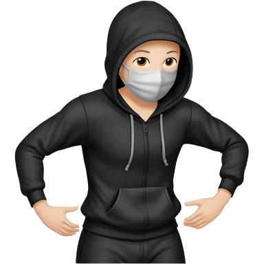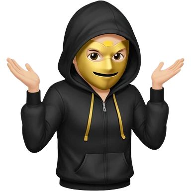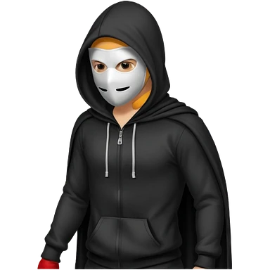 postac w kapturze i masce rrusza tylkiem emoji