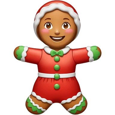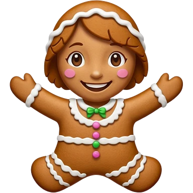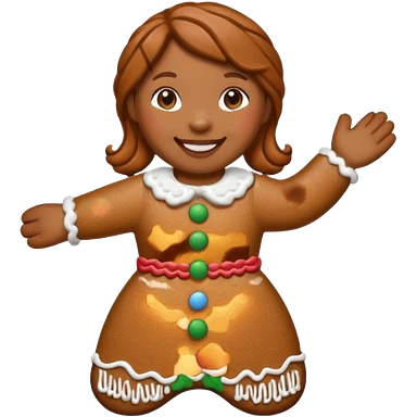 i would like a gingerbread man emoji, it should have colorful buttons, white lines on his arms and legs similar to the gingerbread man character from shrekemoji