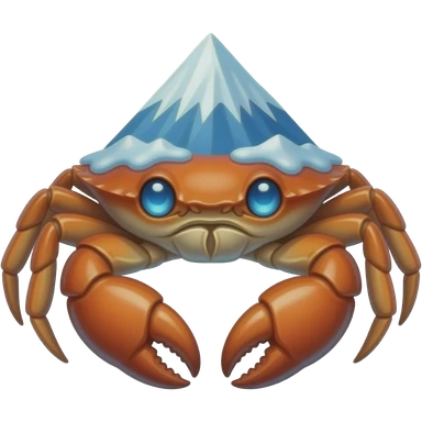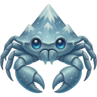 Ice crab with Mount Everest on its back facing with glowing blue eyes emoji