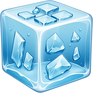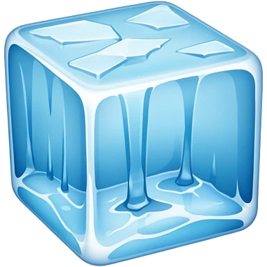 Ice cube with a flat mouthblue heart made of ice, inside an ice cube emoji