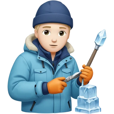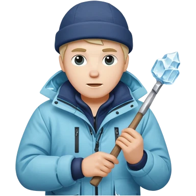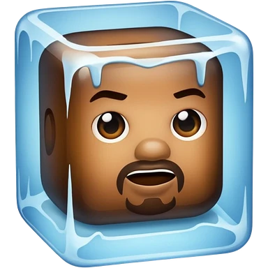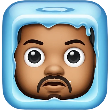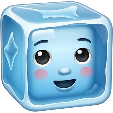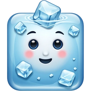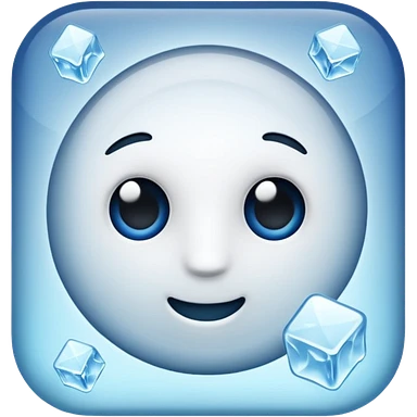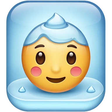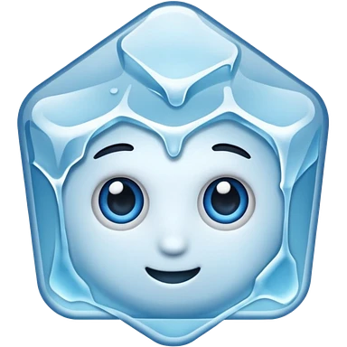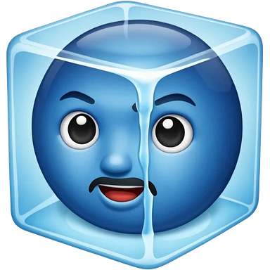 Ice cube with a flat mouthblue heart made of ice, inside an ice cube emoji