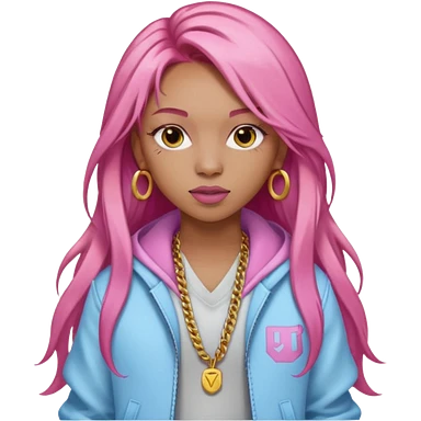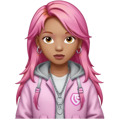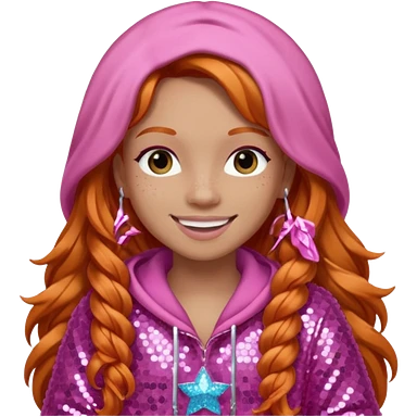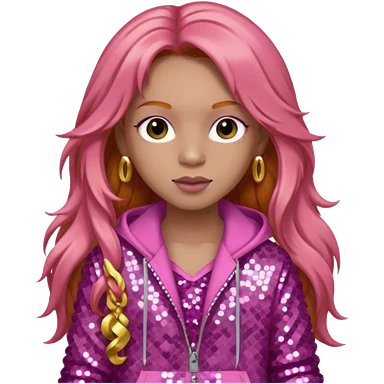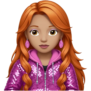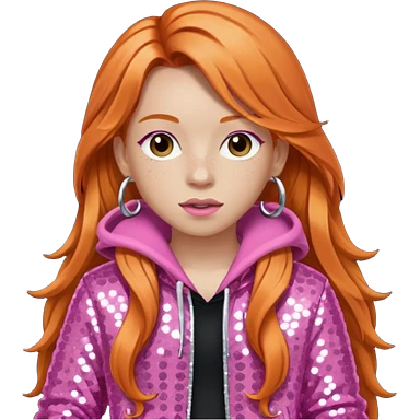 Ice Spice, Rapper (b.2000) with long ginger hair, pink sequin outfit emoji