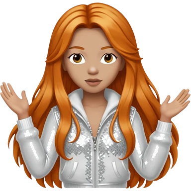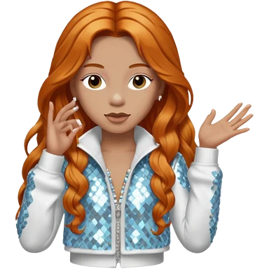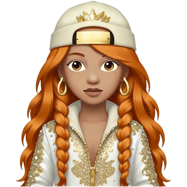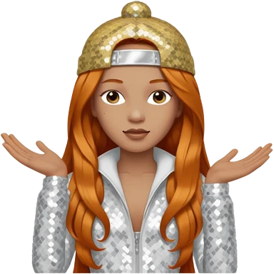 Ice Spice, Rapper (b.2000) with long ginger hair, ivory tour sequin outfit emoji