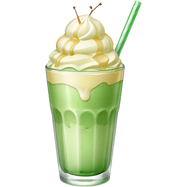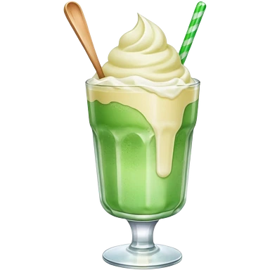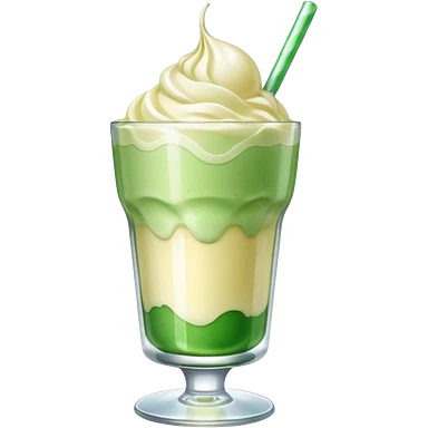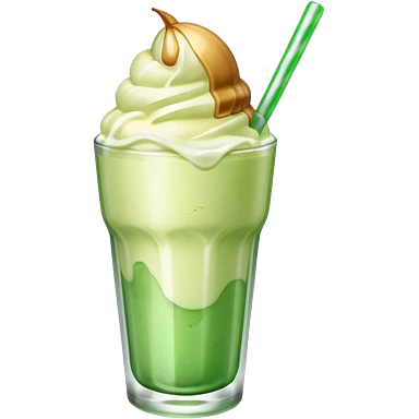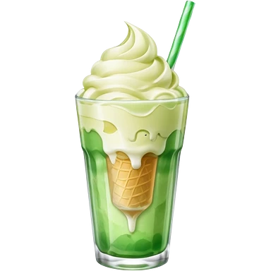 Green cream soda with ice, vainilla ice cream and a straw emoji