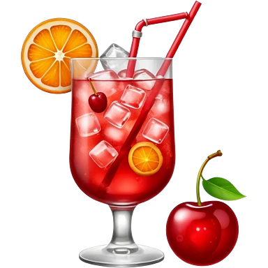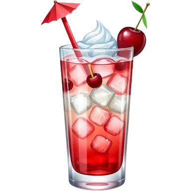 Shirley temple soda in a glass with ice, 3D realistic, cherry garnish emoji