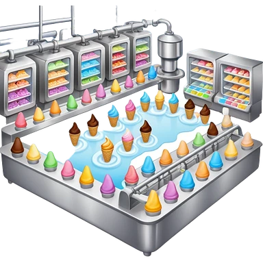Ice cream factory with machines and production lines emoji