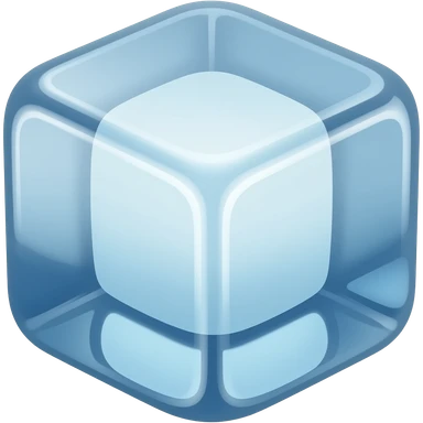 Ice cube with a flat mouthblue heart made of ice, inside an ice cube emoji