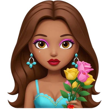 Blonde Young baddie with Long blonde Hair, blue-grey eyes and her big monstera emoji