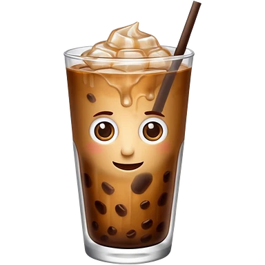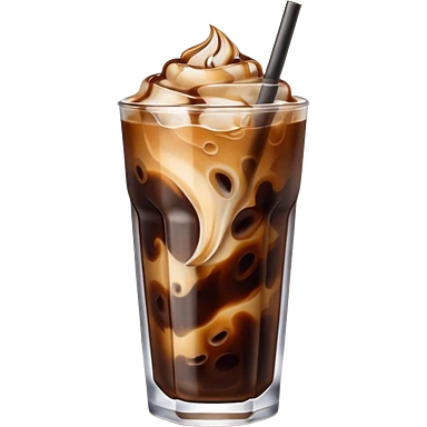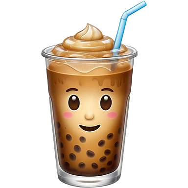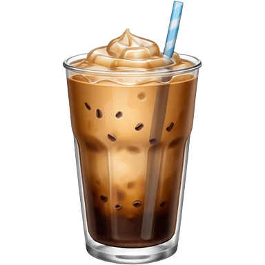 Iced coffee with strawberry cold foam. The coffee is in a plastic cup with a flat lid emoji