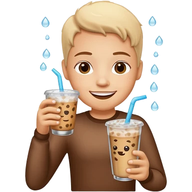 an asian girl with black hair tied in bun wearing a cute gray shirt holding a cup of iced coffee in her hand emoji