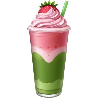 Strawberry iced matcha latte with strawberry cold foam emoji