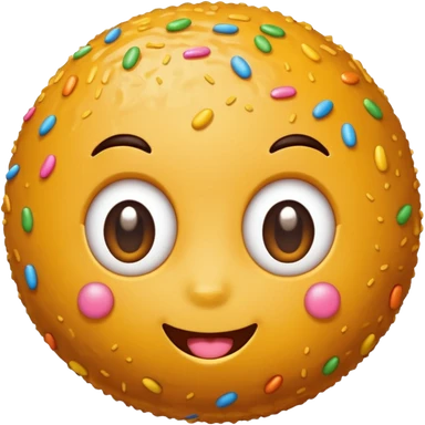 Laddu emoji with kawaii eyes and sprinkles and happy expression emoji