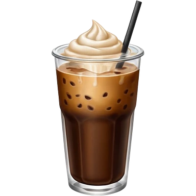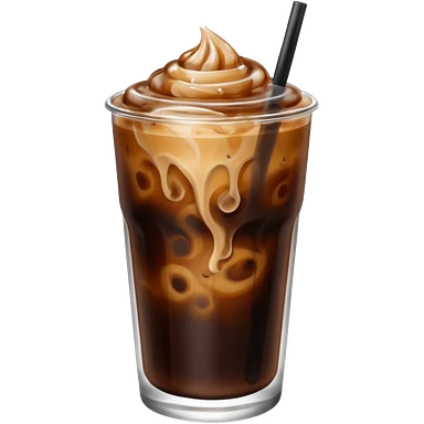 Iced coffee with strawberry cold foam. The coffee is in a plastic cup with a flat lid emoji
