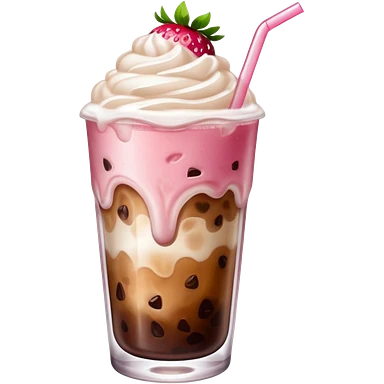 iced matcha latte with strawberry cream cold foam on top with a straw emoji | AI Emoji Generator